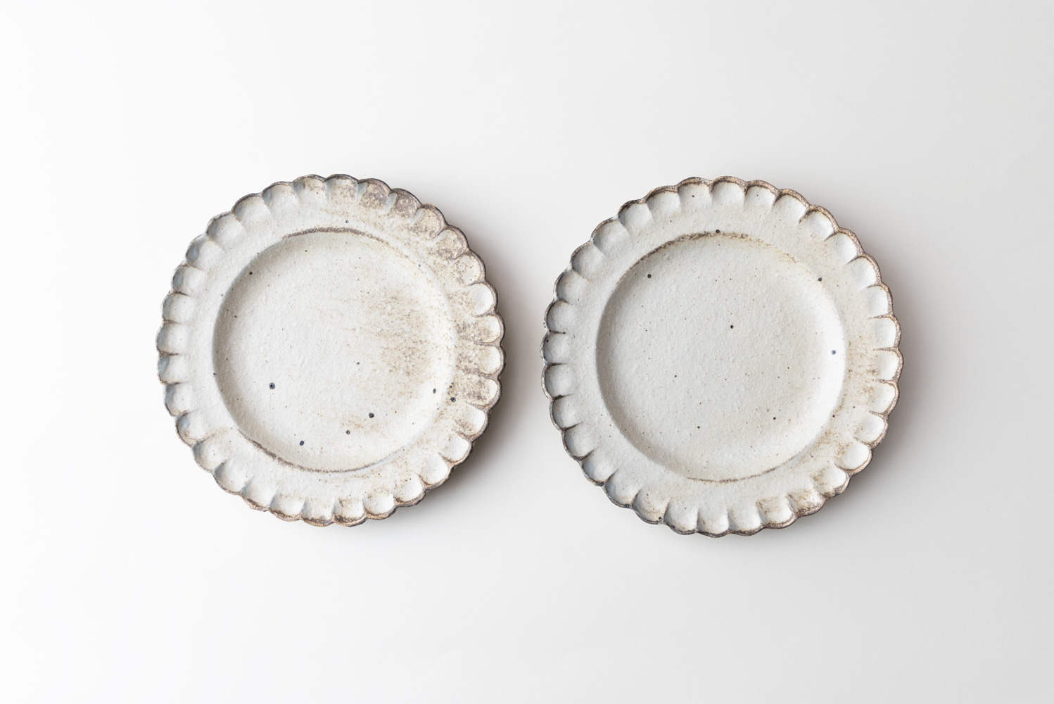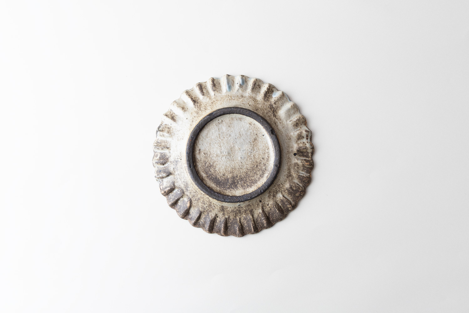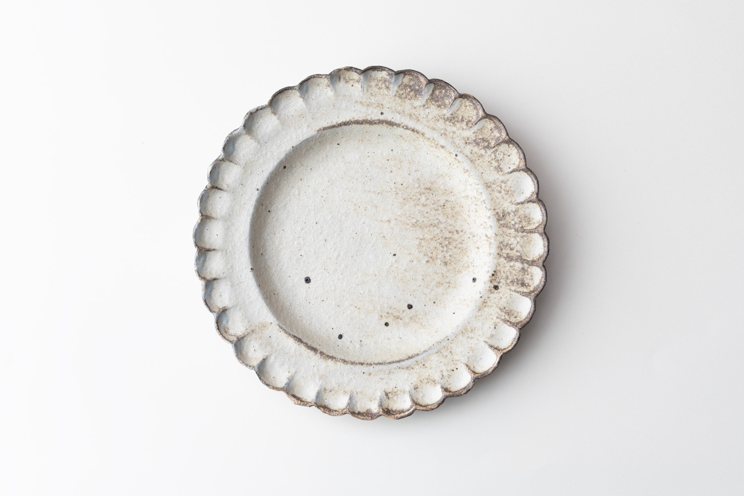 縁に小さな花びらのようなレリーフが連なるプレート。「中」サイズは、取り皿としてはもちろん、焼き菓子やケーキ、和菓子にも程よい大きさ。