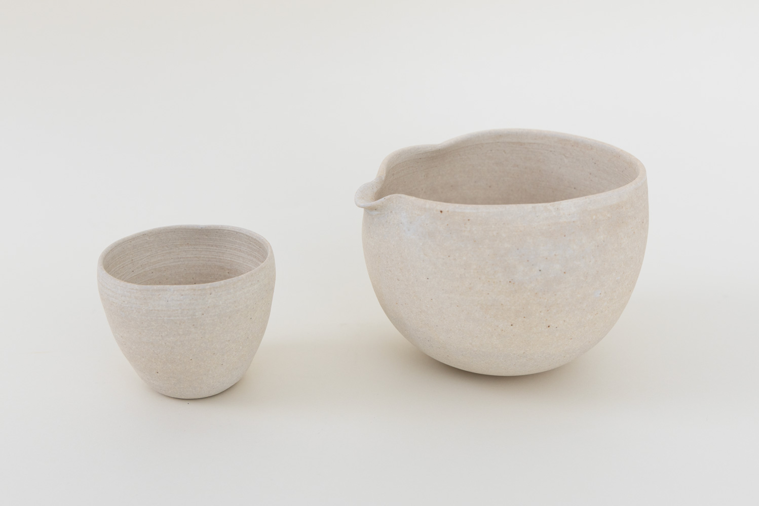 やわらかな生成り色が印象的な、ひょうたん型の片口です。ふっくらと丸みを帯びた胴に、わずかにくびれをもたせた愛らしいフォルムが、食卓に穏やかな表情を添えます。マットな質感はさらりと心地よく、手に取ると驚くほど軽やかで、自然と指に沿うような持ち心地です。見た目は素朴でやさしい佇まいながら、内側はなめらかに仕上げられており、汚れもつきにくく扱いやすい仕様です。やわらかな白の景色と、ひょうたんのかたちが織りなす穏やかな印象を楽しめる酒器です。