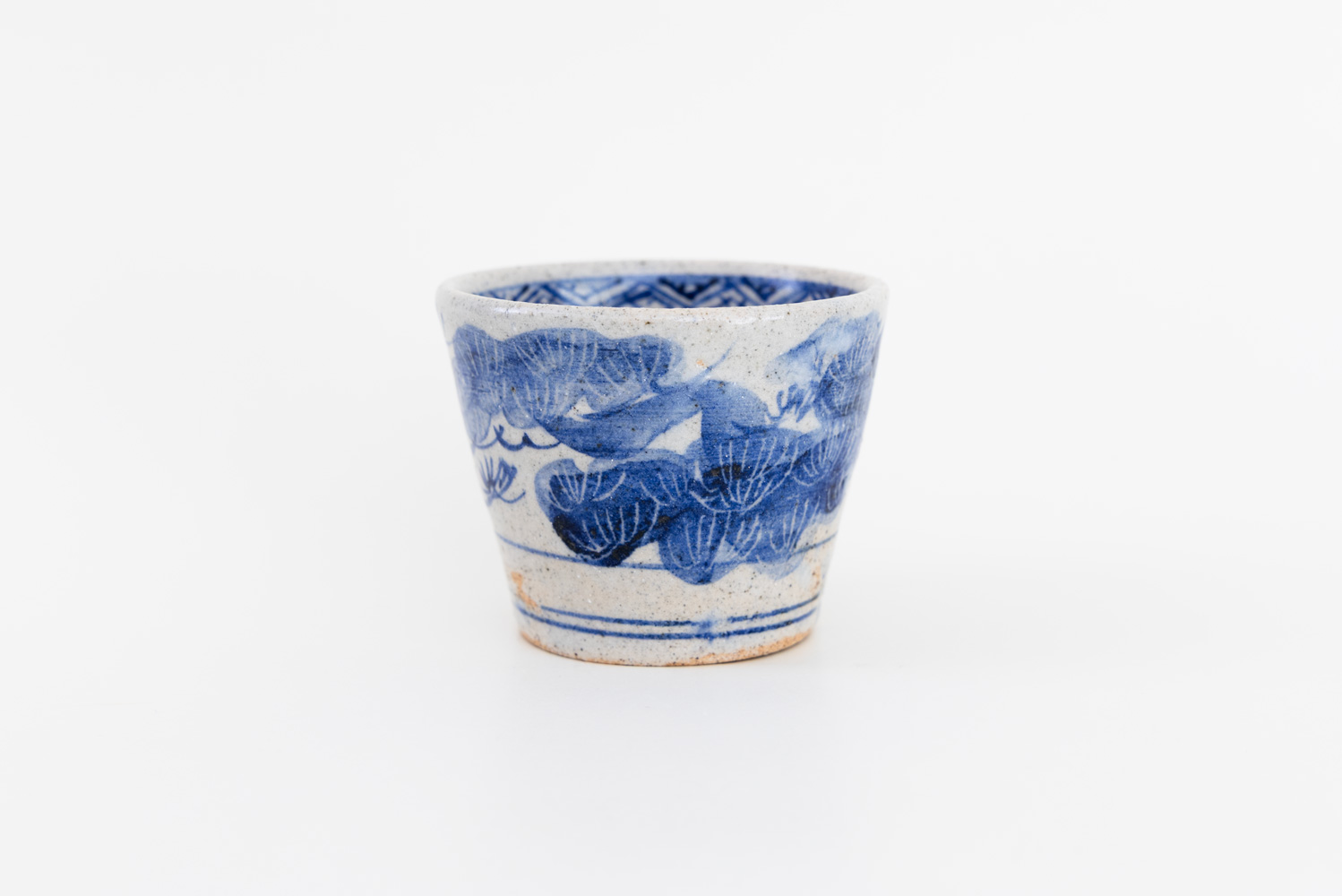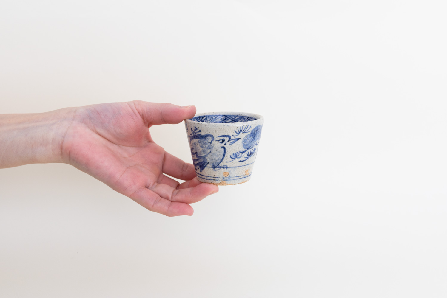 のびやかな呉須で描かれた鷹の姿。羽を広げ、鋭い眼差しで前を見据えるその姿は、古くから「力強さ」「成功」「飛躍」を象徴する吉祥の意匠です。背景に描かれた松は、常緑であることから「長寿」や「不変」を意味します。鷹と松を合わせた図柄は、武家文化にも好まれた縁起の良い取り合わせです。