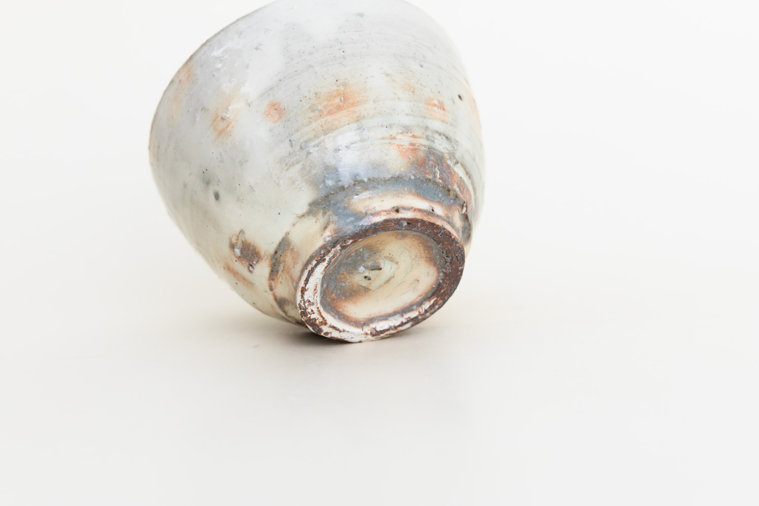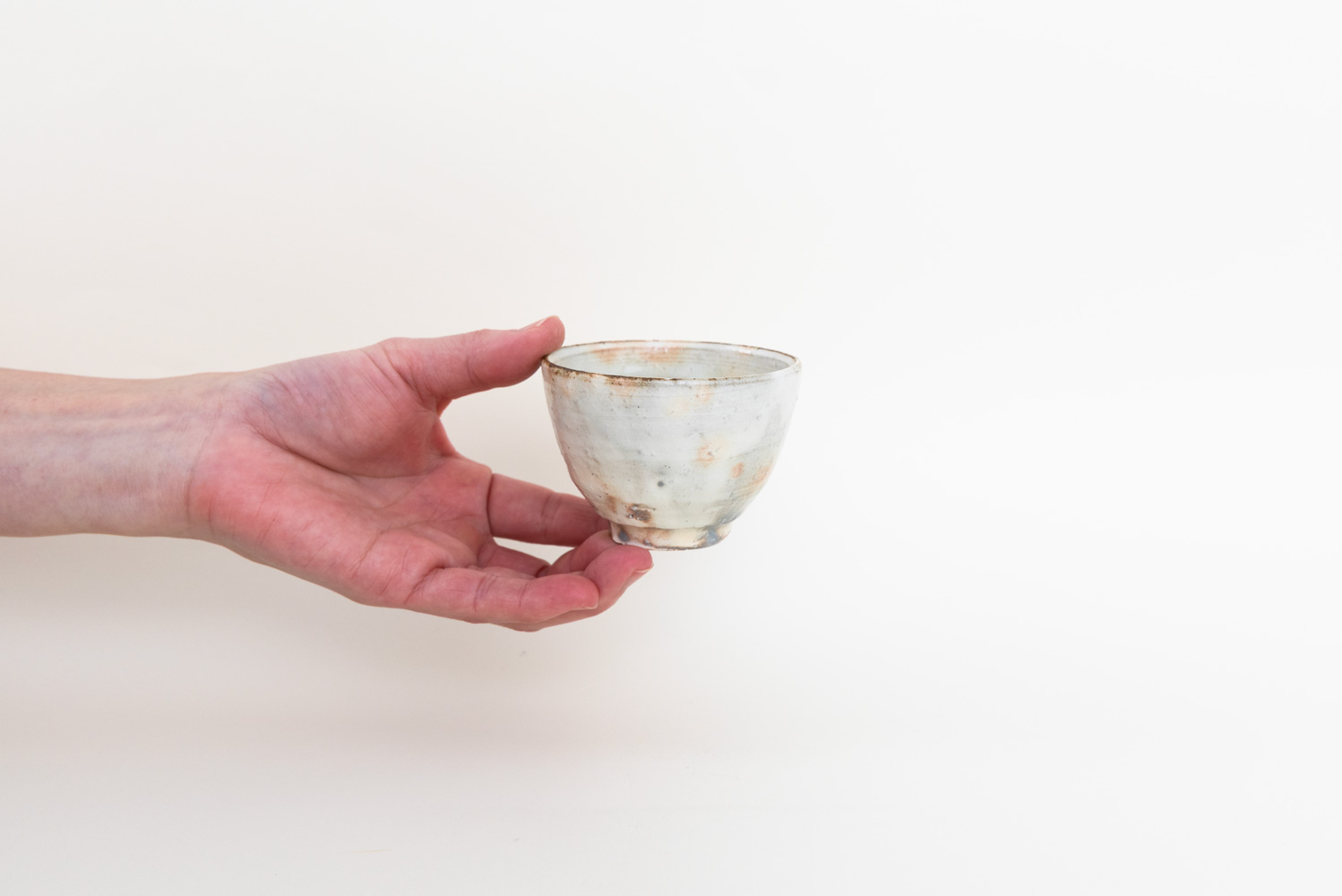やわらかな粉引の白に、ほんのりと紅がさした一客。白一色ではない、奥行きのある粉引の魅力が感じられます。使うたびに愛着が増していく、やさしく温もりのあるぐい呑みです。
