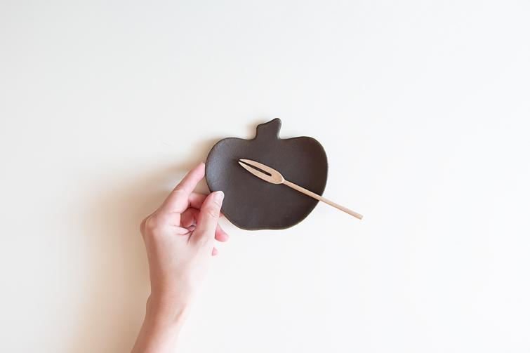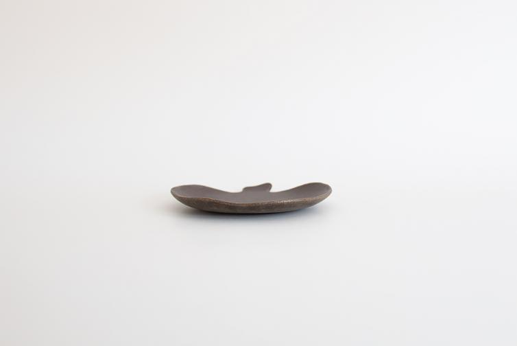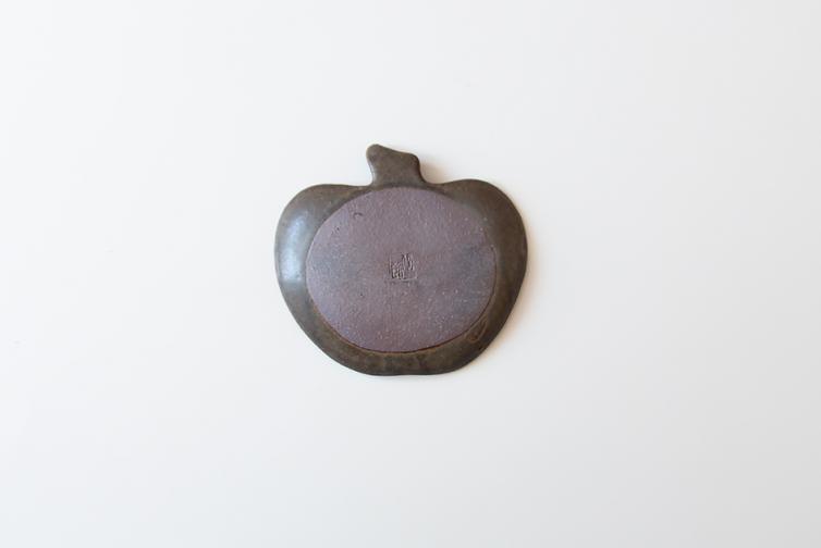 りんごのシルエットを切り取ったようなかわいらしい小皿です。小さなお菓子をのせたり、小さめの取り皿としてもお使いいただけます。その他に粉引の中サイズと小サイズ、錆釉の中サイズをご用意いたしております。