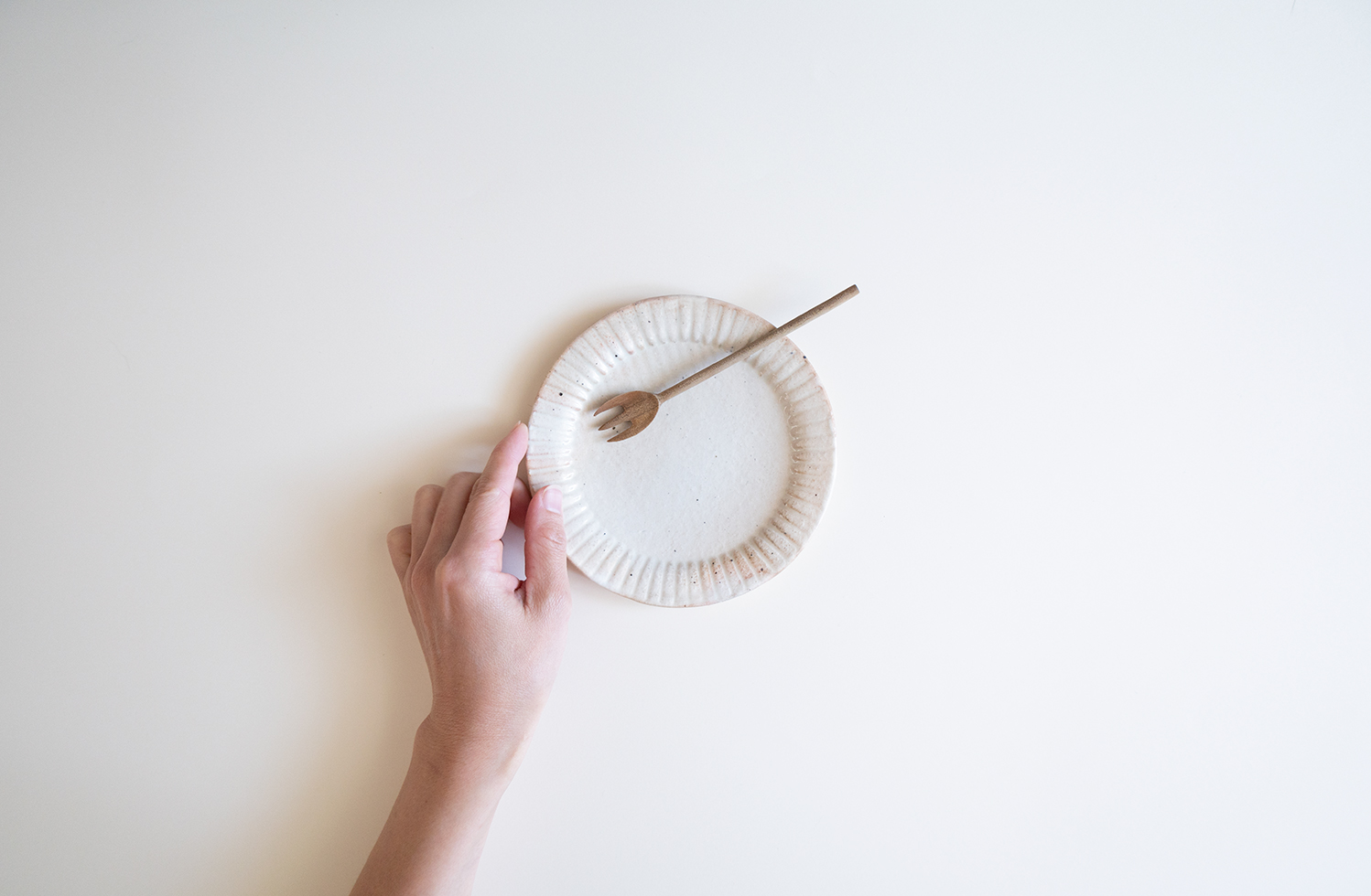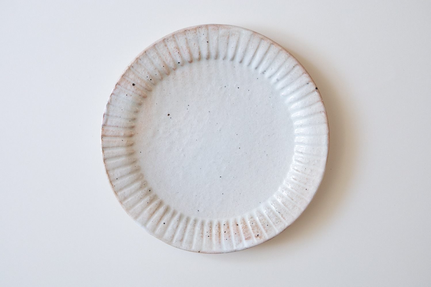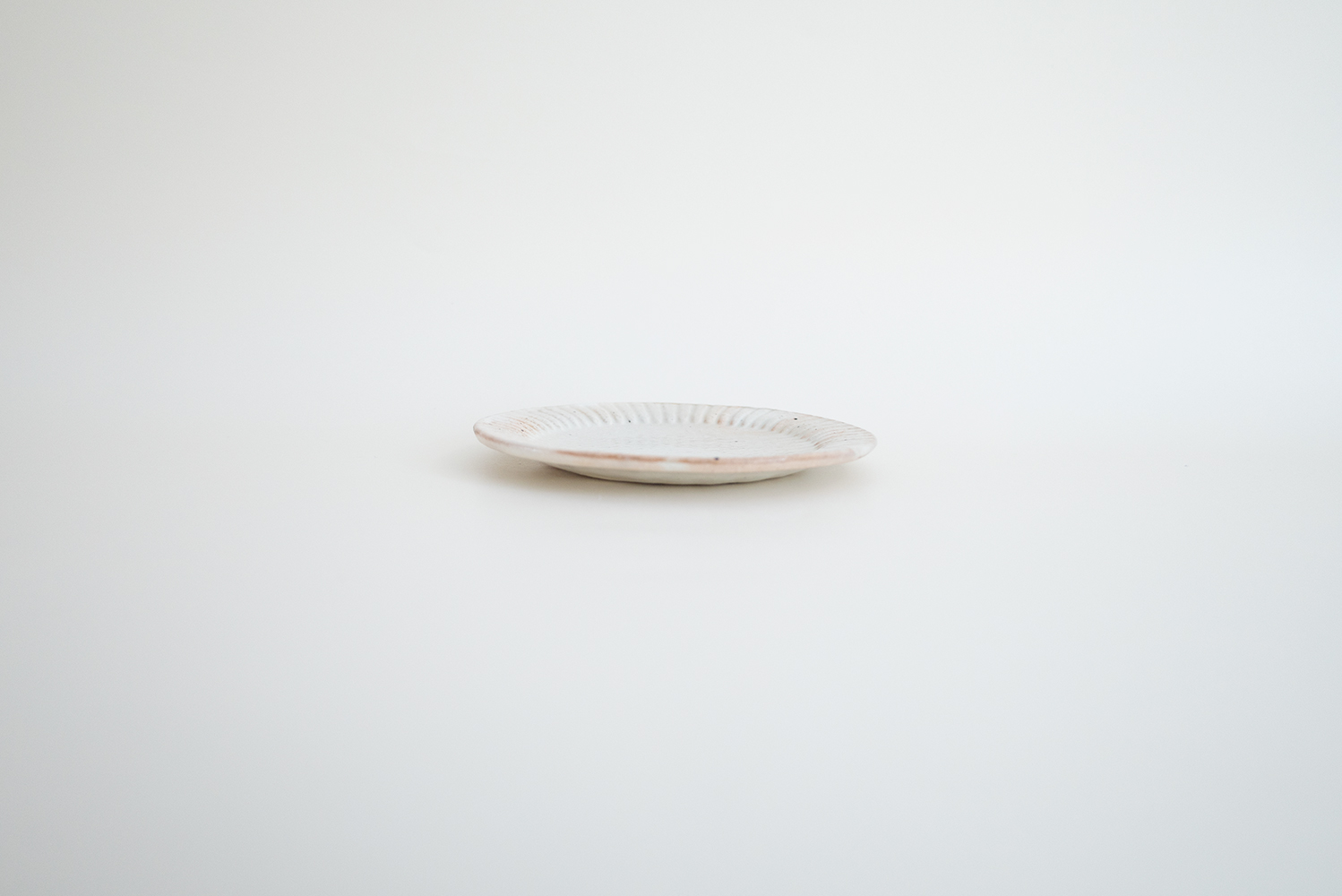 粉引のラッフルプレートのSサイズです。取り皿にちょうど良いサイズです。重なりも良いので綺麗に収納できます。用途に合わせてお選び頂けるS・M・Lの3種類をご用意いたしております。
