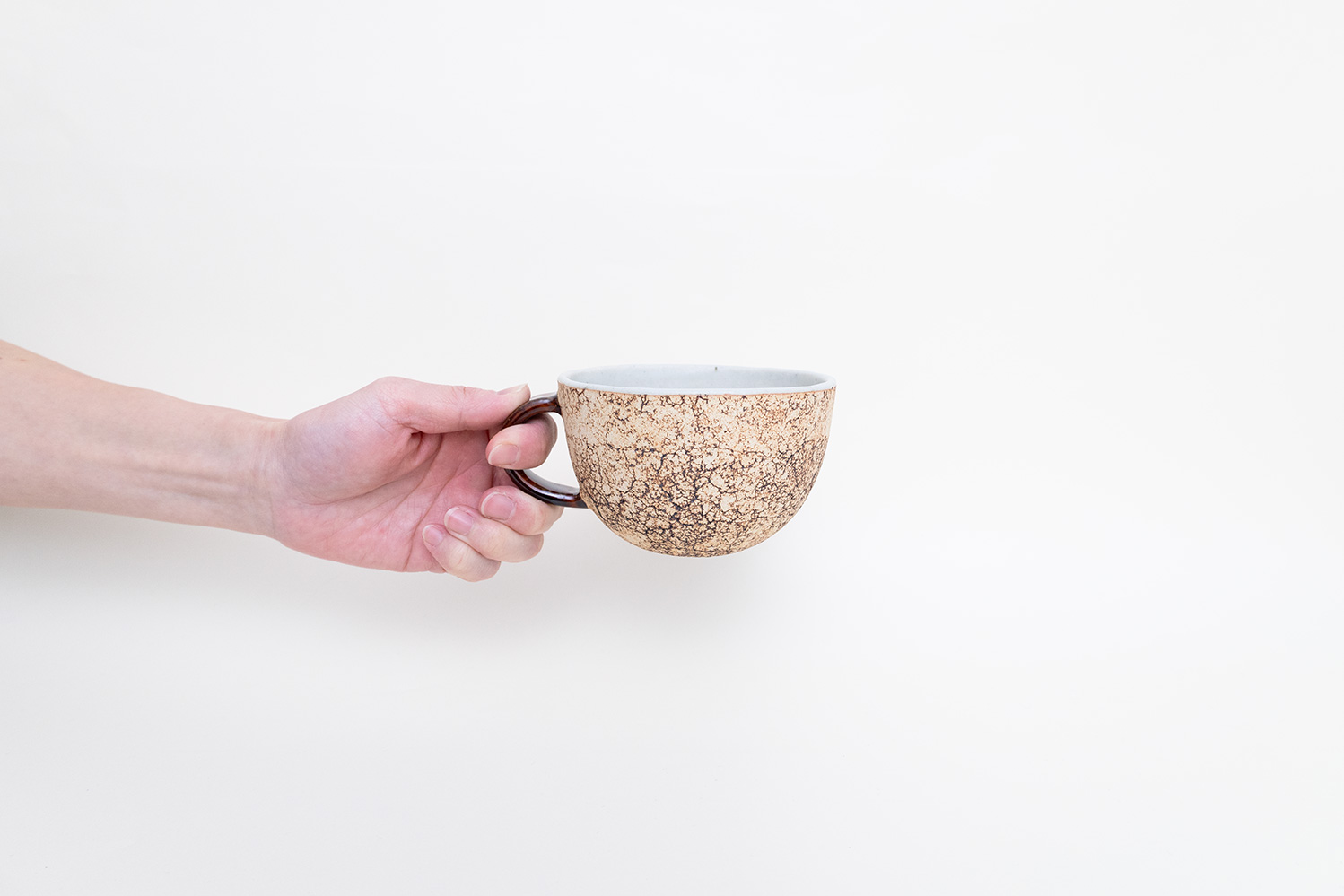 持ち手の色のアクセントが素敵なスープカップです。同じお色でペアにしても、またお色違いで揃えてみても可愛いです。中川さん独自のマットなコルク風の質感をお楽しみください。